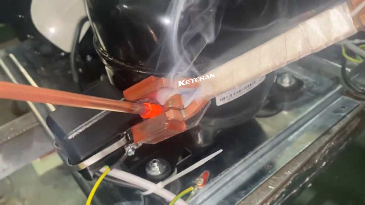 لحام الأنابيب النحاسية على خط إنتاج الفريزر